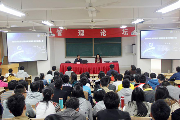 儀式結(jié)束后,周和生董事長(zhǎng)為學(xué)院師生們作了題為“建設(shè)項(xiàng)目全過(guò)程投資管理及審計(jì)系統(tǒng)介紹”的學(xué)術(shù)講座。